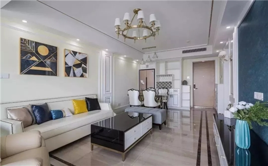 所謂地面分隔,就是在地面磚上做邊線造型,這個做法通常都是綜合了墻面、天花一起的,適合一些相對較大面積的客餐廳區域。