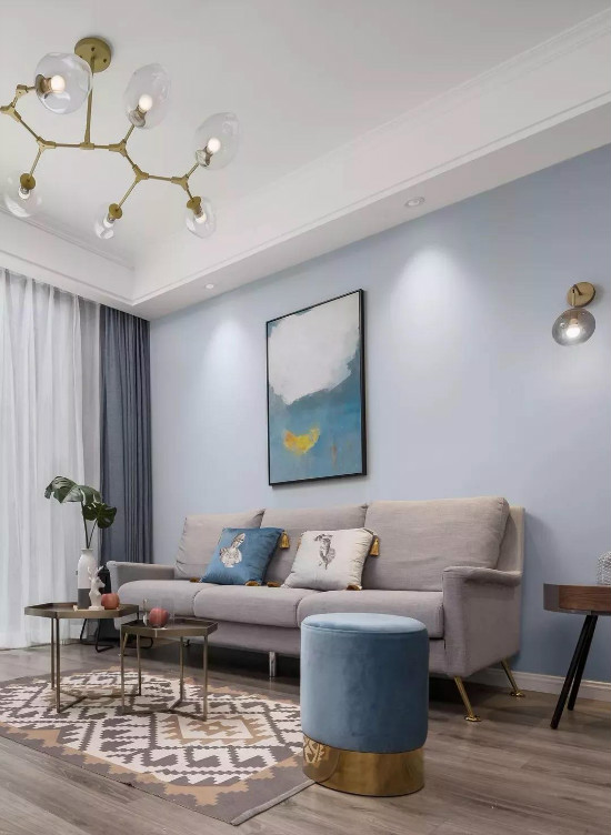 藍天與白云,總是能給人以自然輕松的遐想,在白色天花頂的基礎,當墻面刷墻淡藍色的話,那么整體視覺效果都會是充滿愜意舒適的自然氛圍了。