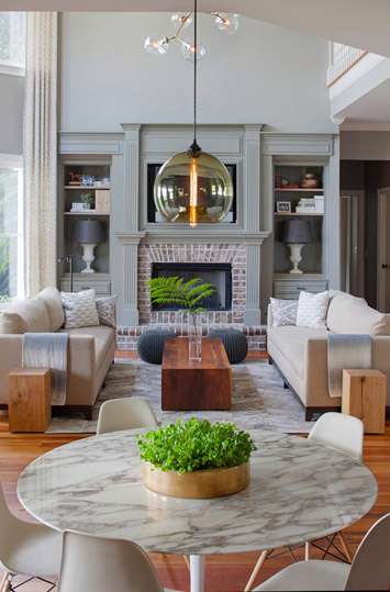 極具現代氣息的沙發茶幾,既具備時尚空間的美感,又符合簡約主義的風格,沉穩內斂的壁爐,卻像是把你帶到了中世紀的富人家,新鮮而復古。