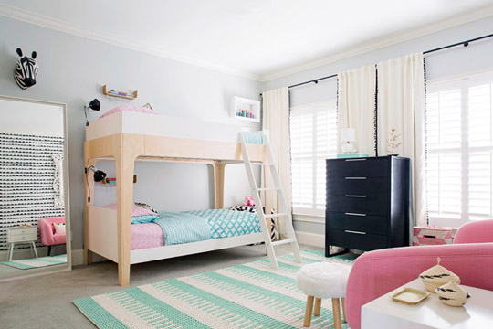 粉色系依然是兒童的最愛。從沙發到床墊,在白色為主色調的前提下,配上淺淺的綠色,穿插悅目的粉色,陽光可以透過落地窗灑進房間,顯得明亮而充滿朝氣。