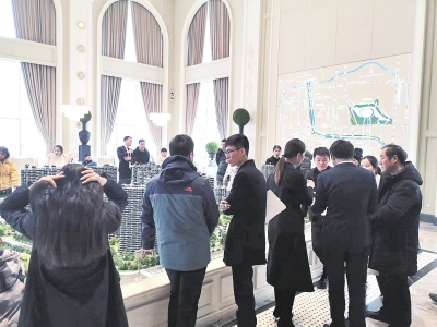 2月18日下午,記者在經開區某品牌樓盤看到,售樓部簽約處已經坐滿了等待的客戶。